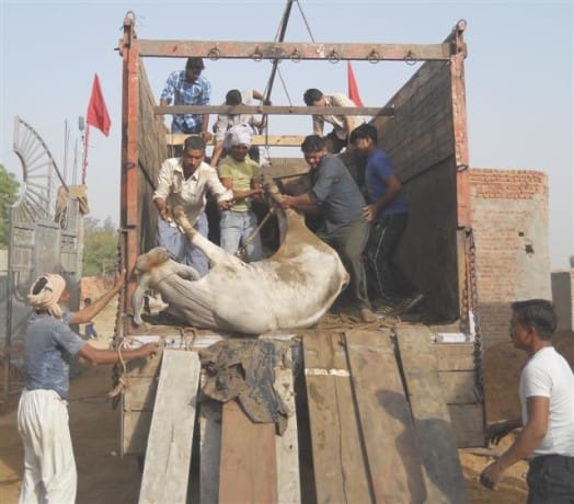 हाथरस। चंदपा थाने से कुछ दूरी पर सोमवार तड़के कुछ पशु चोर पकड़े जाने के डर से 38 गोवंश से भरे दस टायरा ट्रक को खड़ाकर भाग गए। पुलिस ने जब पूरी तरह तिरपाल से ढके हुए ट्रक को खोला तो अंदर मवेशियों की हालत देखकर उनकी आंखें नम हो गईं। आठ गोवंश के अलावा एक का गर्भस्थ बच्चा भी मृत पाया गया। बाकी सभी की हालत भी बेहद दयनीय थी। सभी गायों को इगलास रोड स्थित बालाजी गौ अस्पताल लाया गया। यहां मृत गोवंश को पुलिस ने दफना दिया।
