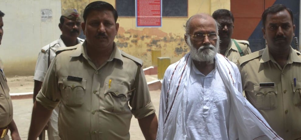 बाराबंकी में शनिवार को जिला कारागार से बाबा परमानंद को रिमांड पर पूछताछ के लिए लेकर जाती पुलिसला