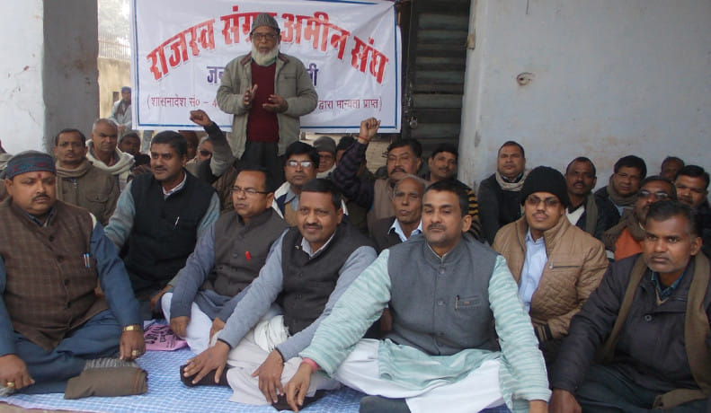 राजस्व संग्रह अमीन संघ ने डीएम कार्यालय पर दिया धरना।