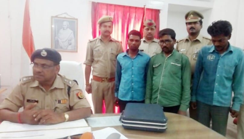 महराजगंज :कोठीभार पुलिस ने सिसवा कस्बे में छापेमारी नकली शराब की फैक्ट्री का खुलासा करते हुए तीन शख्स को गिरफ्तार कर जेल भेज दिया है। साथ ही भारी मात्रा में 450 शीशी नकली शराब, 590 शीशी, नकली रैपर, स्टिकर होलोग्राम ढक्कन, 200 लीटर स्प्रिट, यूरिया आदि बरामद हुई है।सिसवा कस्बे में पुलिस और आबकारी निरीक्षक ने संयुक्त रूप से छापेमारी की। देर रात चली छापेमारी में नकली शराब बनाने की हकीकत का पता चला। ताबड़तोड़ हुई छापेमारी में सत्यनाराण उर्फ सत्तु जायसवाल निवासी सिसवा बाजार, विनोद पुत्र रमाशंकर कन्नौजिया निवासी भारत खंड पकडी थाना कोठीभार, दूधनाथ गुप्ता पुत्र रामवृक्ष निवासी बड़हरा चरगहां थाना कोठीभार को गिरफ्तार कर लिया गया। इसके खिलाफ मुकदमा दर्ज कर एसपी प्रमोद कुमार के सामने पेश किया गया। यहां पूछताछ के बाद गिरफ्तार तीनों शख्स जेल भेज दिए गए। छापेमारी टीम मेें एसओ कोठीभार आनंद गुप्ता, उप निरीक्षक दिलीप शुक्ला, अरूण कुमार, आरक्षी अभिनव सिह, राजेश पाण्डेय, राजू सिंह, दिनेश कुशवाहा, आरिफ सलीम शामिल रहे।